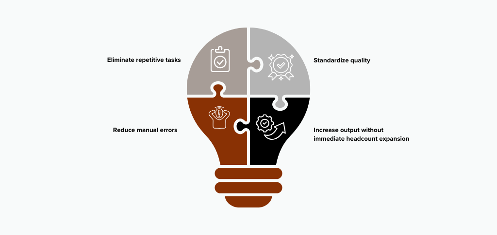 Automation tools, workflow integrations, and AI-supported process systems allow businesses to: